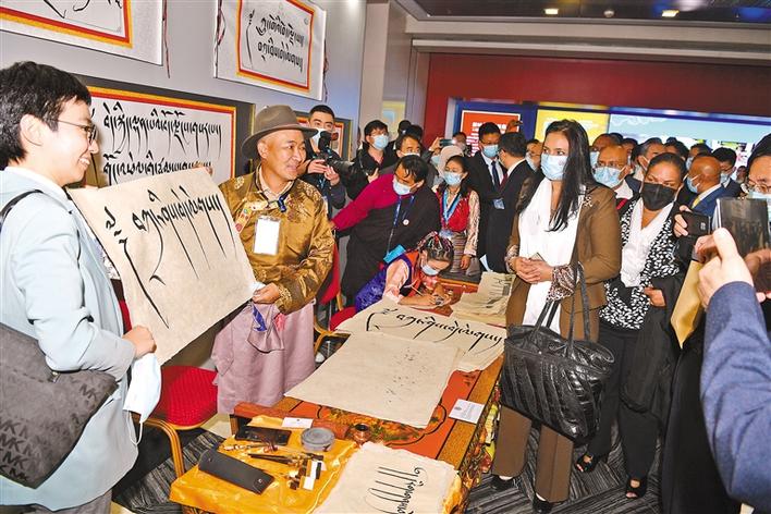 清朝道光皇帝冊封十一世達賴喇嘛金冊、《中央人民政府和西藏地方政府關(guān)于和平解放西藏辦法的協(xié)議》等一件件歷史文物,充分證明了西藏自古以來就是祖國不可分割的一部分。藏文書法、傳統(tǒng)手工藝和酥油茶等高原飲食文化,充分展示了西藏與祖國各地在漫長歷史長河中的各民族廣泛交往、全面交流、深度交融。
