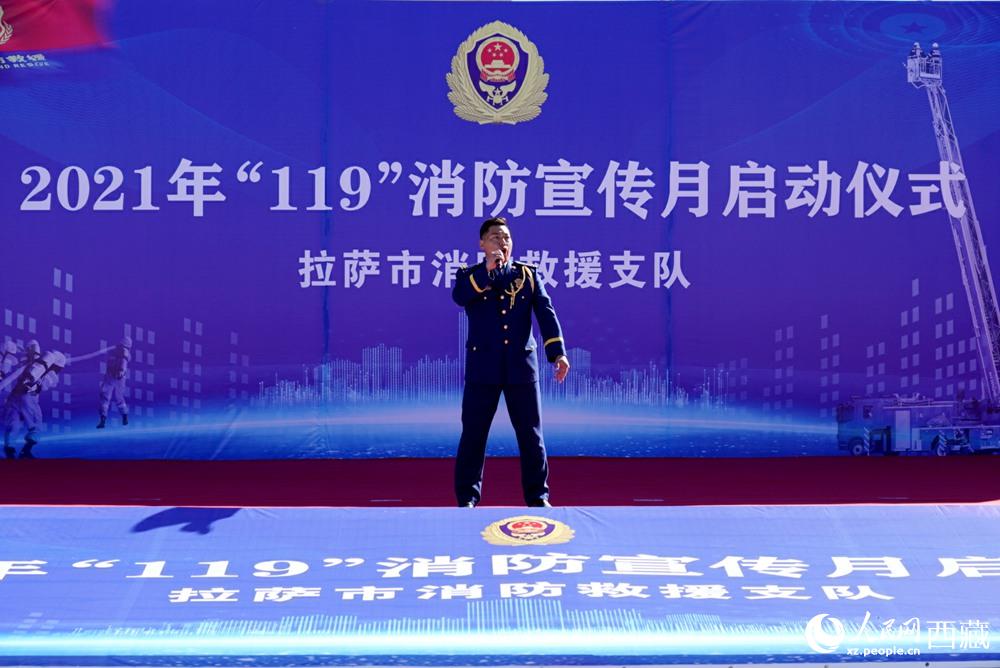 拉薩市2021年“119”消防宣傳月啟動儀式現(xiàn)場。人民網(wǎng) 次仁羅布