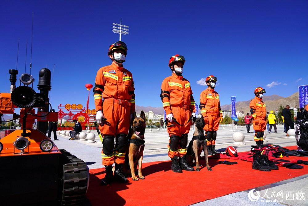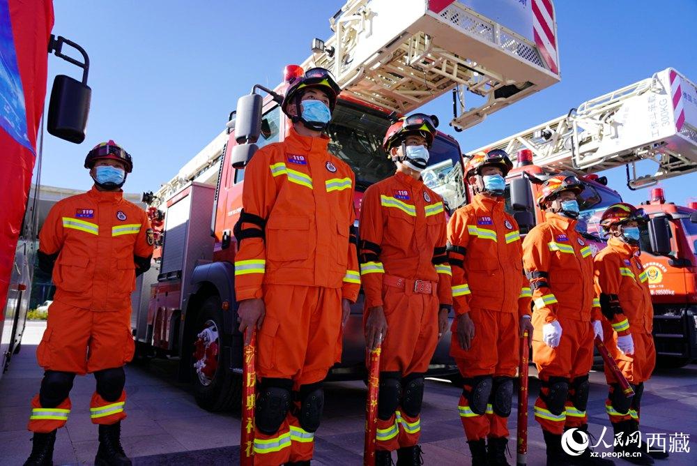 拉薩市2021年“119”消防宣傳月啟動儀式現(xiàn)場。人民網(wǎng) 次仁羅布攝