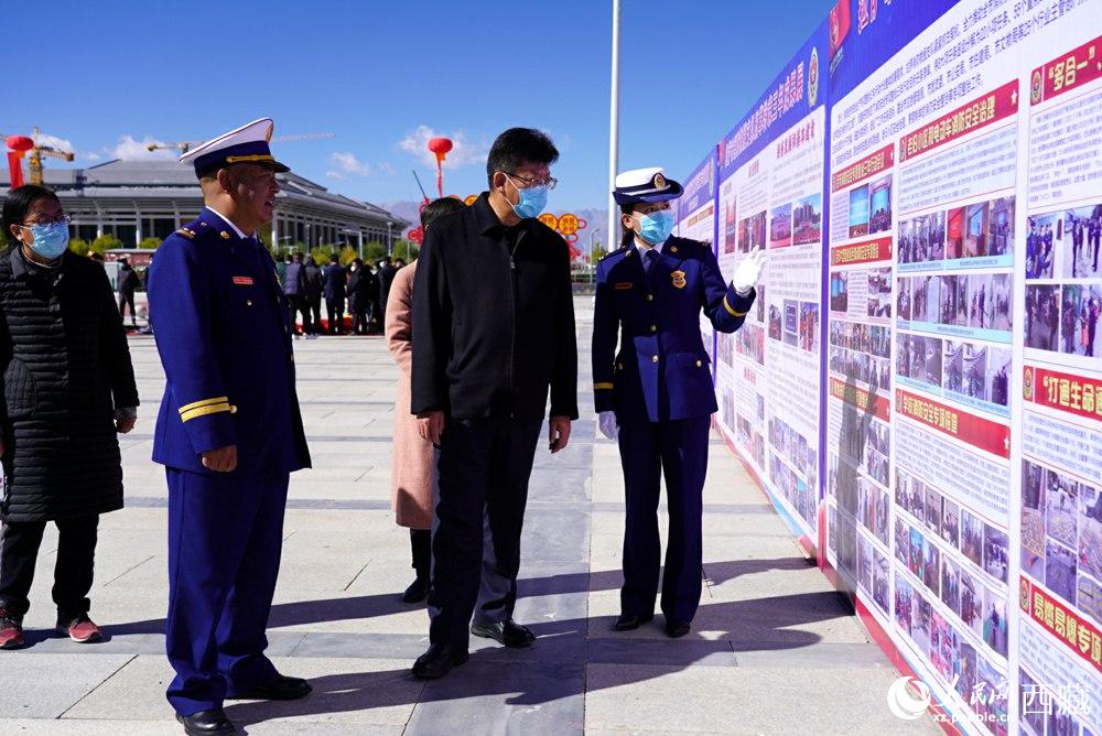參觀拉薩市消防救援隊伍改制轉(zhuǎn)隸三周年成果展。人民網(wǎng) 次仁羅布攝