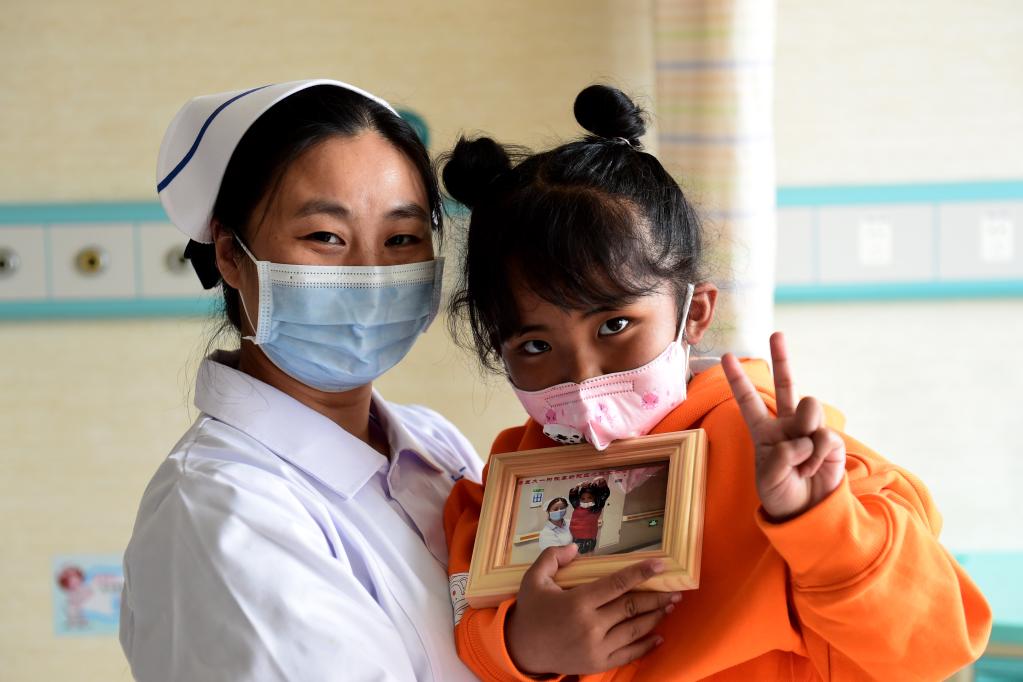 11月2日,歸桑卓瑪(右)在出院前和護士長馬寒香合影。黃博涵 攝
