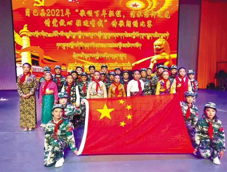 圖為崗巴縣舉辦的詩歌朗誦比賽現(xiàn)場。崗巴縣龍中鄉(xiāng)小學(xué)供圖