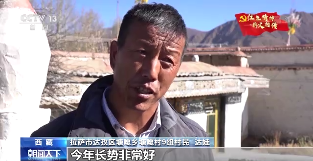 拉薩市達(dá)孜區(qū)塘嘎鄉(xiāng)塘嘎村9組村民 達(dá)娃:(農(nóng)業(yè)研究所)給了我們1500畝的良種進(jìn)行試種,今年長(zhǎng)勢(shì)非常好,一畝地可以出800到900斤,大家非常喜歡。這個(gè)良種一方面產(chǎn)量非常高,另一方面抗倒伏。我們收割很方便,秸稈的量也比其他的品種要多。