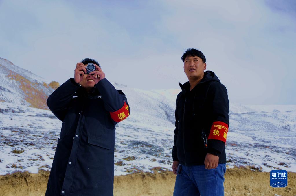 楚魯松杰鄉(xiāng)的干部在型欽牧場(chǎng)巡邏(2019年1月8日攝)。新華社記者 陳尚才 攝