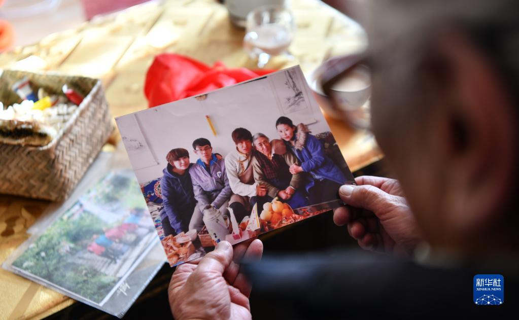 次仁卓瑪在看孫子孫女和她的合影(12月7日攝)。新華社記者 晉美多吉 攝