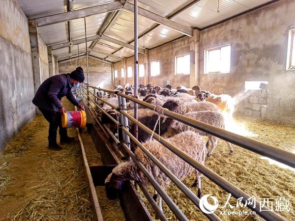 大寒時節(jié),狂風(fēng)呼嘯。在平均海拔4500多米的西藏日喀則市康馬縣涅如堆鄉(xiāng)藏細綿羊育肥農(nóng)牧民專業(yè)養(yǎng)殖合作社(簡稱“合作社”),牧民占堆正忙著給上千只羊投喂飼料。他笑著告訴記者:“自從我們這兒開始人工種草后,就建立了合作社,羊統(tǒng)一養(yǎng)在合作社里,冬天再也不用去很遠的地方放牧了,日子也比以前過得好了?!?/p>