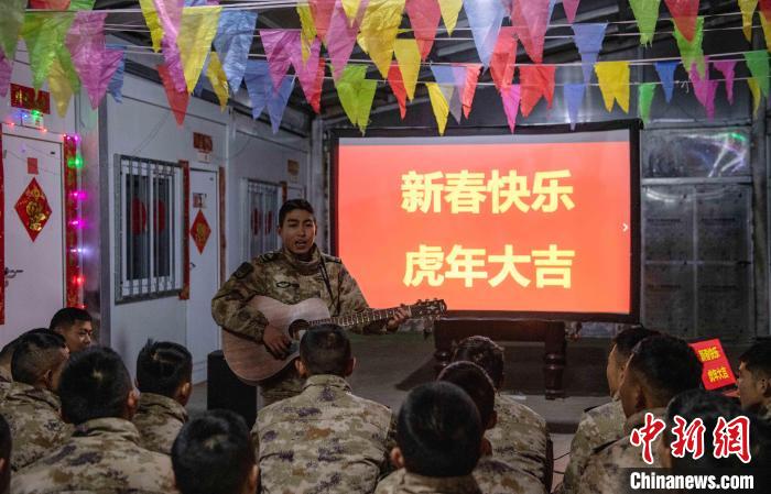 聯(lián)歡的尾聲指導(dǎo)員夏邦國拿著最后的彩袋走到臺前,把晚會推向高潮,“兄弟們,這還有一大袋紅包,里面裝著的可是最珍貴的祝?!薄9俦鴤冇贸槊ず械男问讲痖_新年的“紅包”。中士趙路寬抽到一個最鼓的,打開是滿滿的糖果;下士吳兵拆開的是一個帶有小機關(guān)的新年賀卡;下士鄧云川拆到一封遠方的匿名信,“雖不曾相見與相識,但知道是你們在默默堅守付出,守衛(wèi)著祖國的雪域邊防”。伴隨著他磕絆的普通話,連隊官兵漸漸安靜下來?!斑呹P(guān)有我,請祖國和人民放心”,簡易投影的大屏上開始播放著官兵們一年多來頂風(fēng)冒雪,戰(zhàn)天斗地的光影片段,在這大山里的多少的苦累酸甜,都已經(jīng)鐫刻在茫茫雪域。