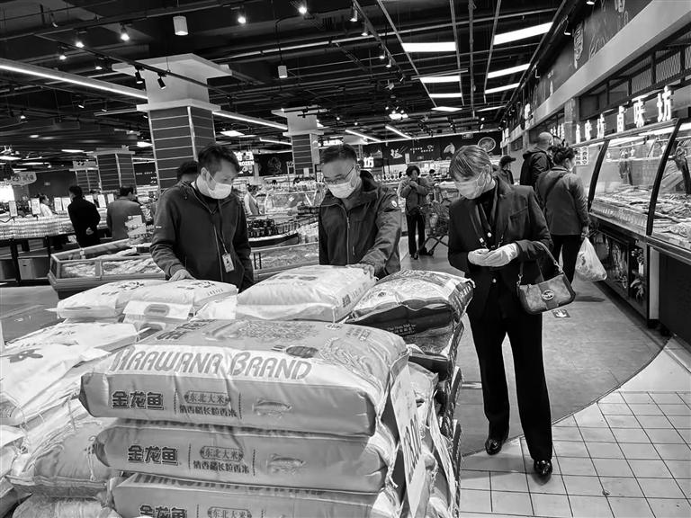 市場監(jiān)管部門執(zhí)法人員檢查某超市商品。圖由自治區(qū)市場監(jiān)管局提供
