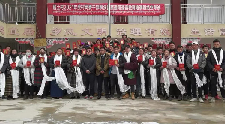 打造“領(lǐng)頭雁”,輻射帶動群眾共同進步?!皻q歲鬧元宵,轟天鑼鼓敲”,進一步讓“學習”之風在基層助力“好學”之苗生根發(fā)芽,工作隊在元宵節(jié)開展“2021年度國家通用語言教育培訓結(jié)業(yè)典禮”,從全村116名參訓人員中評選出“學習之星”1名,“進步之星”2名進行表揚表彰,樹立學習榜樣,激勵對標對表,努力學習國家通用語言文字,有利于促進各民族交往交流交融。
