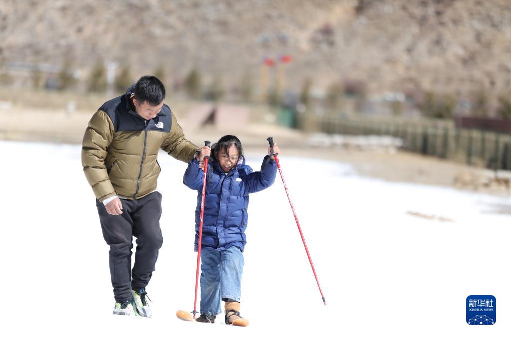 2月19日,家長(zhǎng)帶著孩子練習(xí)滑雪。新華社記者 姜帆 攝