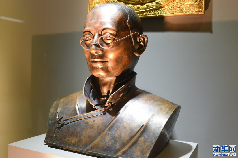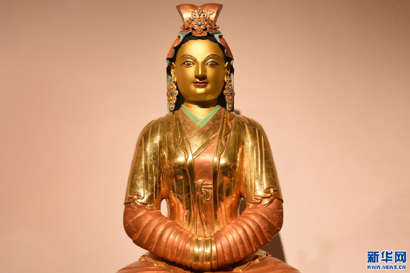 圖為白納鍛銅技藝代表性傳承人羅布占堆的手工作品《文成公主》(2月25日攝)。新華網(wǎng) 旦增努布 攝