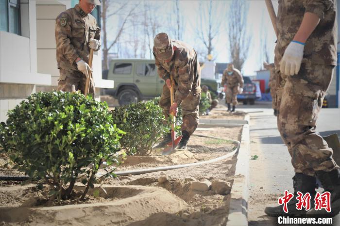 圖為官兵正在種樹。張寅 攝