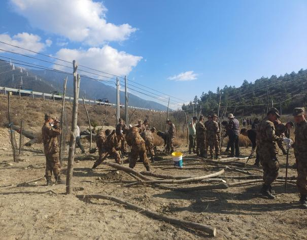 為大力推進(jìn)生態(tài)環(huán)境建設(shè),進(jìn)一步加強(qiáng)民族團(tuán)結(jié)工作,增進(jìn)“軍愛民、民擁軍,軍民團(tuán)結(jié)一家親”的軍民感情。3月12日,米林縣委統(tǒng)戰(zhàn)部派駐羌納鄉(xiāng)崗嘎村工作隊、崗嘎村“兩委”班子聯(lián)合77215部隊,組織黨員群眾開展“軍地攜手植樹造林 共創(chuàng)綠色和諧家園”主題植樹活動。