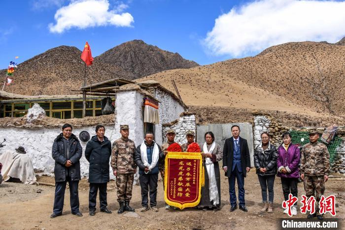 圖為拉薩市林周縣武裝部和退役軍人事務(wù)局慰問旁多鄉(xiāng)入伍兄弟。朱呈 攝