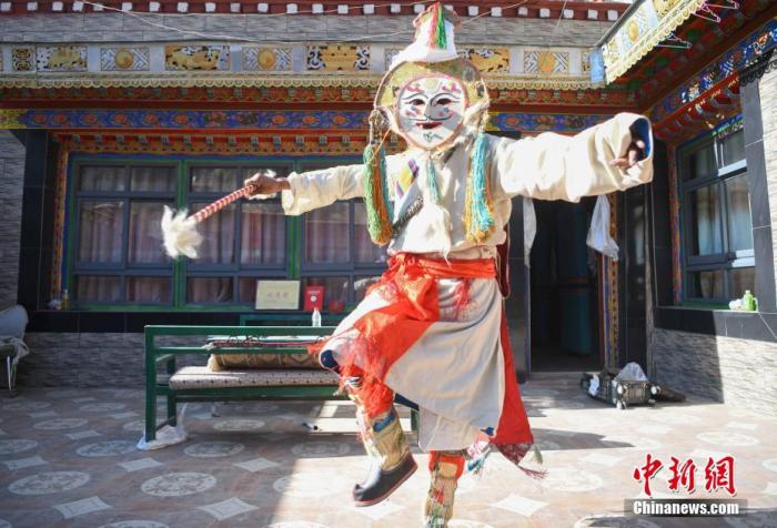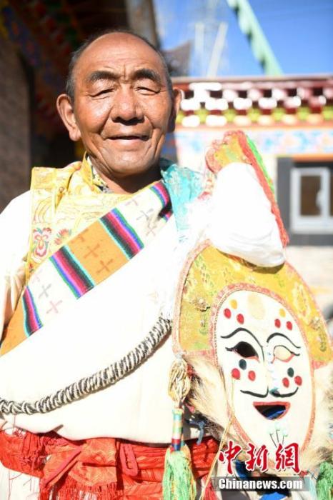 圖為3月21日,協(xié)榮“仲孜”國家級(jí)非物質(zhì)文化遺產(chǎn)傳承人桑珠。 中新社記者 貢嘎來松 攝