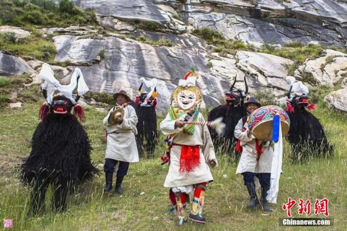 資料圖為桑珠帶領(lǐng)團(tuán)隊(duì)表演協(xié)榮“仲孜”。 中新社記者 貢嘎來松 攝