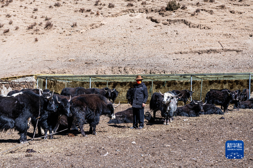 貢培在西藏娘亞牦牛養(yǎng)殖產(chǎn)業(yè)發(fā)展有限責(zé)任公司的標準化養(yǎng)殖場上工作(3月30日攝)。新華社記者 周荻瀟 攝