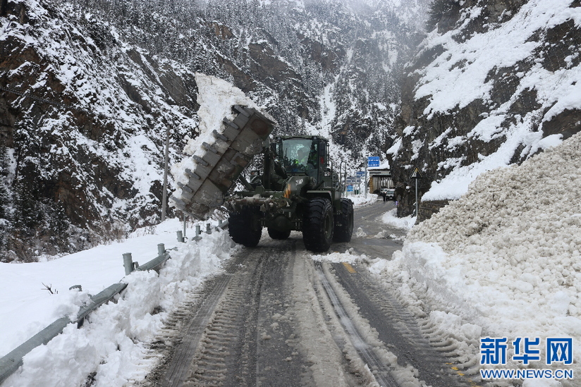 武警第二機動總隊某支隊官兵正在清理雪崩積雪(4月4日攝)。新華社發(fā)(何欽攝)