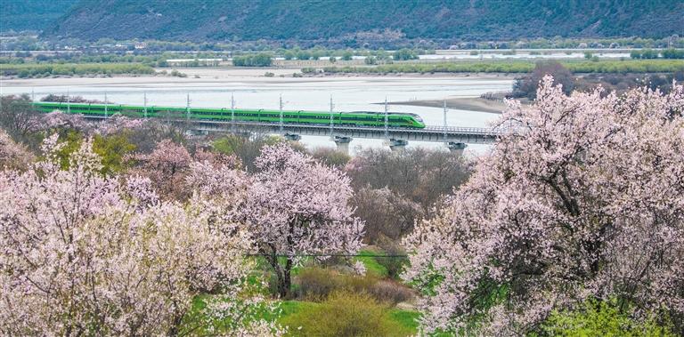 拉林鐵路迎來(lái)通車運(yùn)營(yíng)以來(lái)的第一個(gè)春天。復(fù)興號(hào)動(dòng)車每日穿梭于雅魯藏布江畔的層巒疊嶂間,與兩岸盛開(kāi)的桃花共同構(gòu)成一幅優(yōu)美畫(huà)卷。