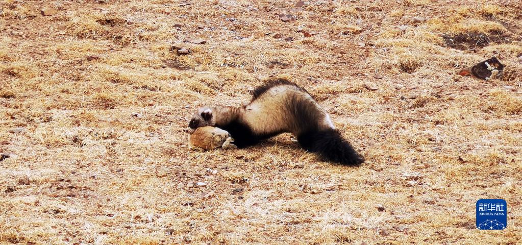 這是西藏那曲班戈縣拍攝的一只艾鼬捕食鼠兔的場(chǎng)景(手機(jī)照片,4月13日攝)。新華社記者 沈虹冰 攝