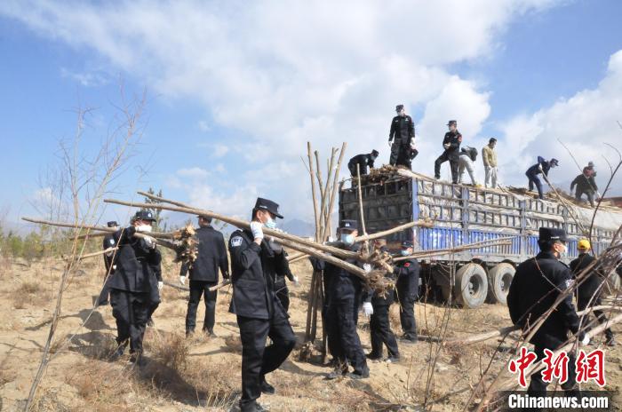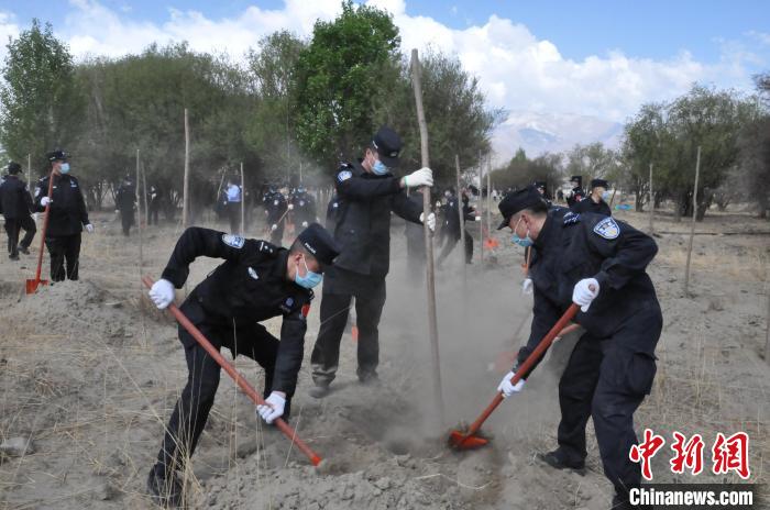 圖為西藏邊檢總站輪訓(xùn)大隊(duì)民警植樹活動(dòng)現(xiàn)場(chǎng) 。西藏邊檢總站輪訓(xùn)大隊(duì)供圖