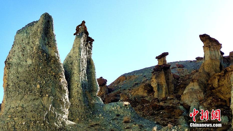 霞義溝位于西藏阿里地區(qū)札達(dá)縣香孜鄉(xiāng)境內(nèi),總長(zhǎng)約5公里,左右分布數(shù)十個(gè)小溝。4月23日記者看到,由于長(zhǎng)久以來(lái)的風(fēng)化,使這里的土林地貌呈現(xiàn)上寬下窄的“蘑菇”奇觀,而形如人、魚、龜、旱獺、青蛙、飛鳥等的土林地貌更是惟妙惟肖。據(jù)稱,這里的土林底部主要為沙礫和黃土,頂部為含鐵量較高的礦層,在春日的陽(yáng)光下,錯(cuò)落有致,色彩斑斕。