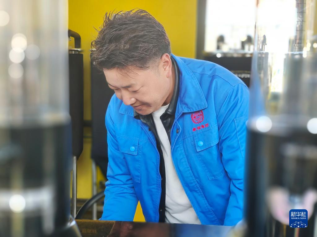 4月11日,拉瓊在青稞體驗館配酒。新華社記者 劉洲鵬 攝