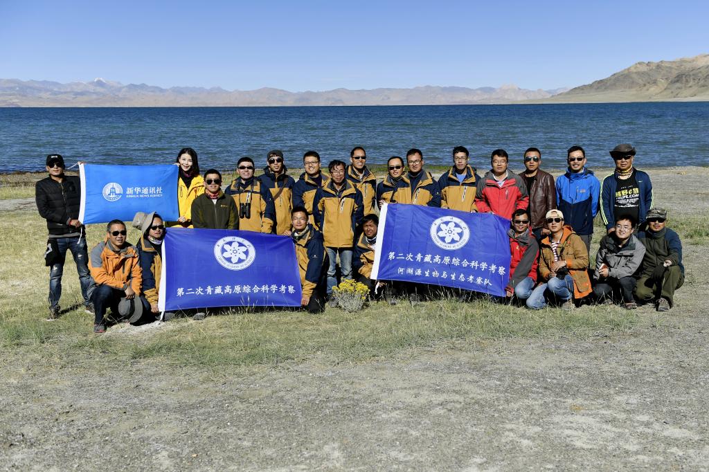 2018年8月,記者在西藏阿里與青藏科考隊(duì)員合影。