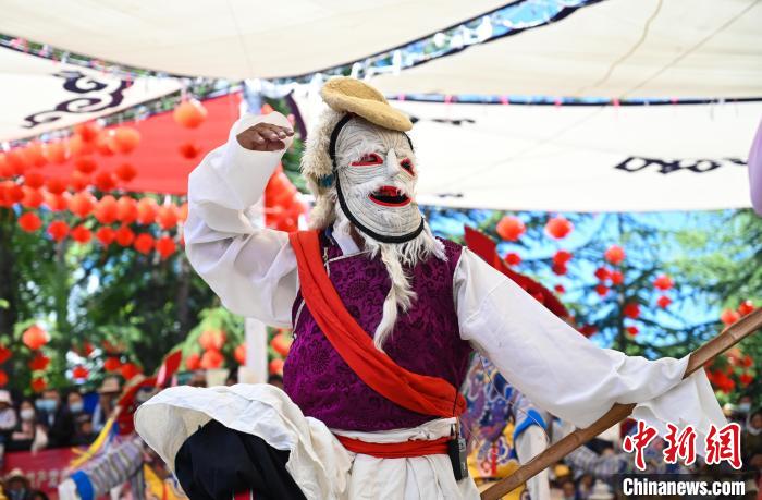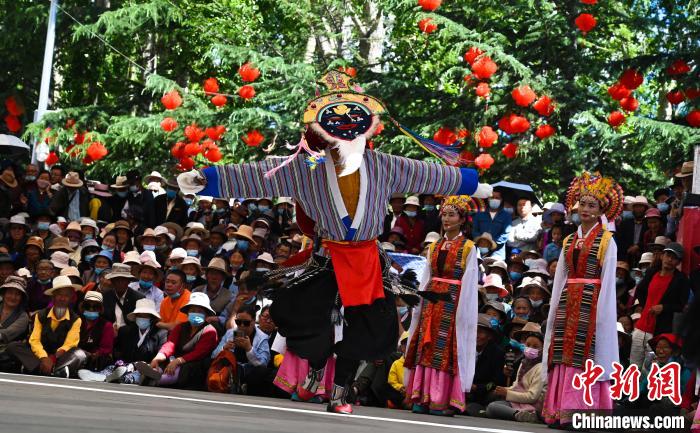 圖為2021年6月,西藏民間藏戲隊(duì)在宗角祿康公園表演。趙朗 攝