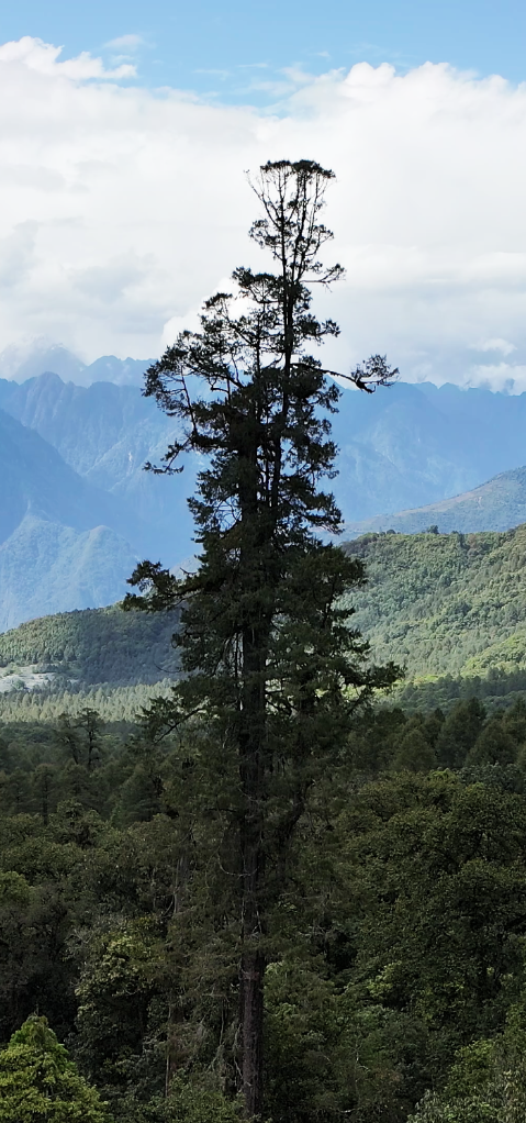 墨脫位于西藏東南部,地處雅魯藏布江下游,擁有豐富的生物多樣性和廣闊的原始森林。不丹松主要分布在海拔1400米至2500米的山地雨林與亞熱帶氣候區(qū),要測(cè)量樹(shù)高難度很大。