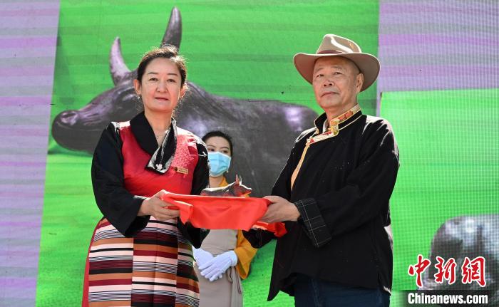 西藏牦牛博物館創(chuàng)館館長、現(xiàn)榮譽(yù)館長吳雨初向西藏牦牛博物館捐贈了玉石牦牛雕刻作品。