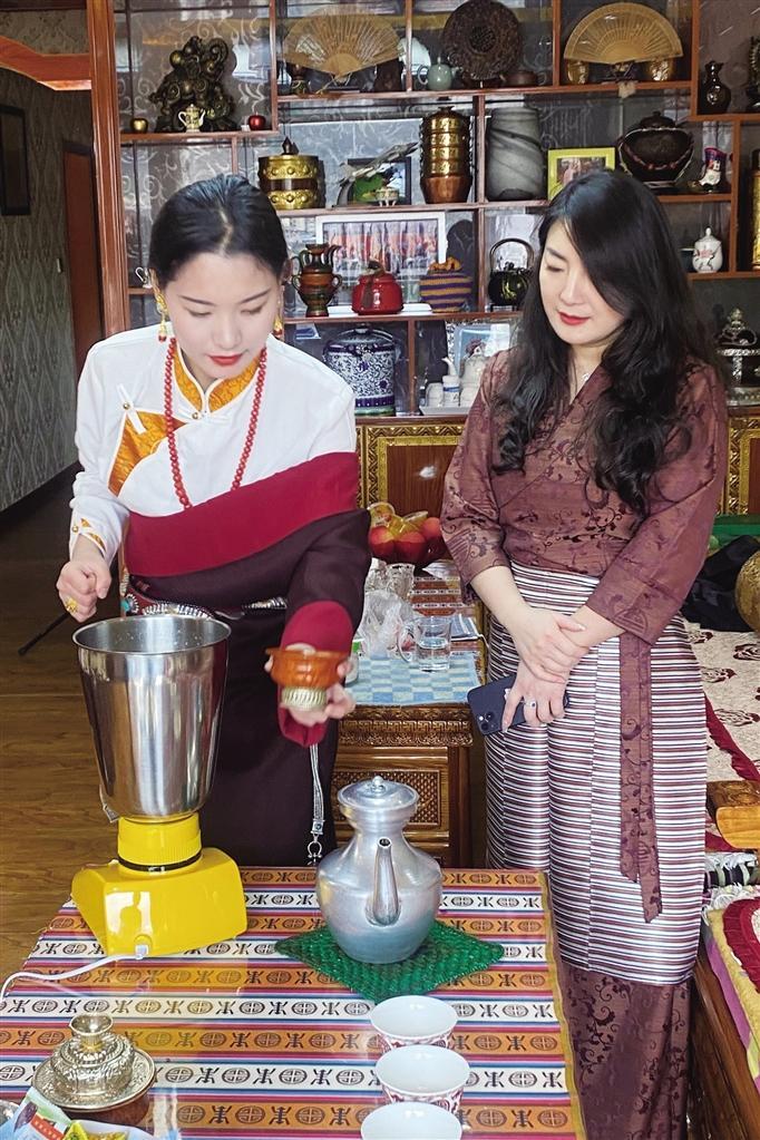 “來門店前,我從來沒有接觸沖泡茶。以前家里的茶都是煮的,比如酥油茶、清茶。清茶呢,還要加鹽巴。我第一次喝沖泡茶,覺得盛茶的杯子好小啊,味道也太淡了,沒加鹽!”門店的女茶藝師扎西擁宗,笑著談起自己初喝沖泡茶的經(jīng)歷。
