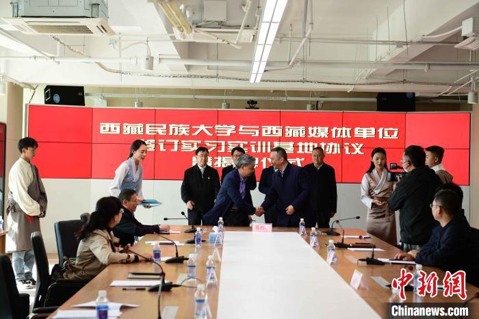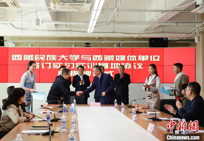 5月27日,西藏民族大學(xué)與西藏日?qǐng)?bào)社、西藏廣播電視臺(tái)、人民網(wǎng)西藏頻道、中國(guó)新聞社西藏分社、中國(guó)西藏網(wǎng)西藏記者站等媒體單位簽訂實(shí)習(xí)實(shí)訓(xùn)基地協(xié)議暨揭牌儀式在西藏日?qǐng)?bào)舉行。