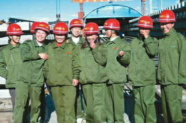 2005年,雪域高原上第一條天路——青藏鐵路安多軌排生產(chǎn)基地,26名35歲以下的“鐵二代”女青年組成的女班。
