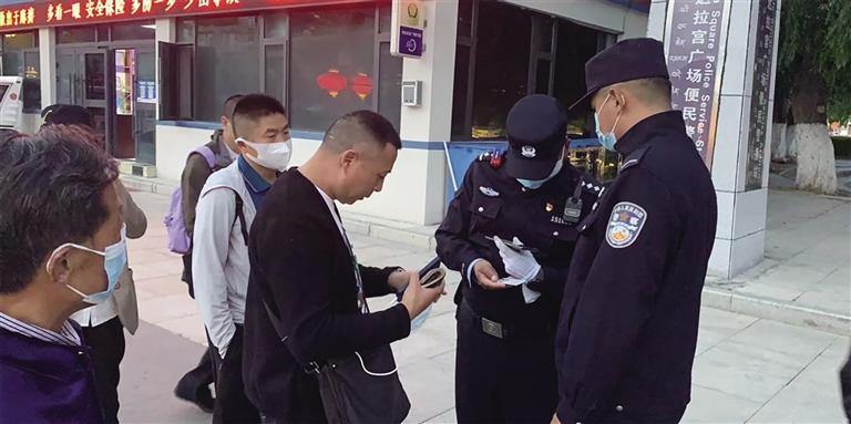 民警使用5G移動(dòng)警務(wù)終端對(duì)過(guò)往人員進(jìn)行檢查。圖由布達(dá)拉宮便民警務(wù)站提供