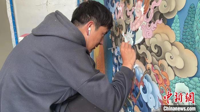 資料圖為裝修工人正在為新房繪制藏式壁畫。次成達吉 攝