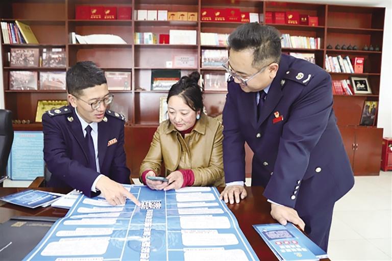稅務工作人員為納稅人講解政策。 圖由 西藏自治區(qū)稅務局 提供