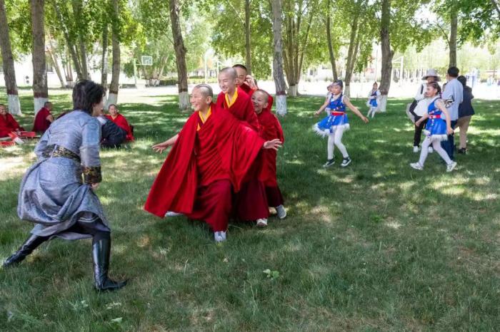 2021 年6 月1 日兒童節(jié),西藏佛學(xué)院與拉薩市第一小學(xué)舉行聯(lián)誼活動,孩子們一起朗誦詩歌、玩游戲等。記者 江飛波 攝