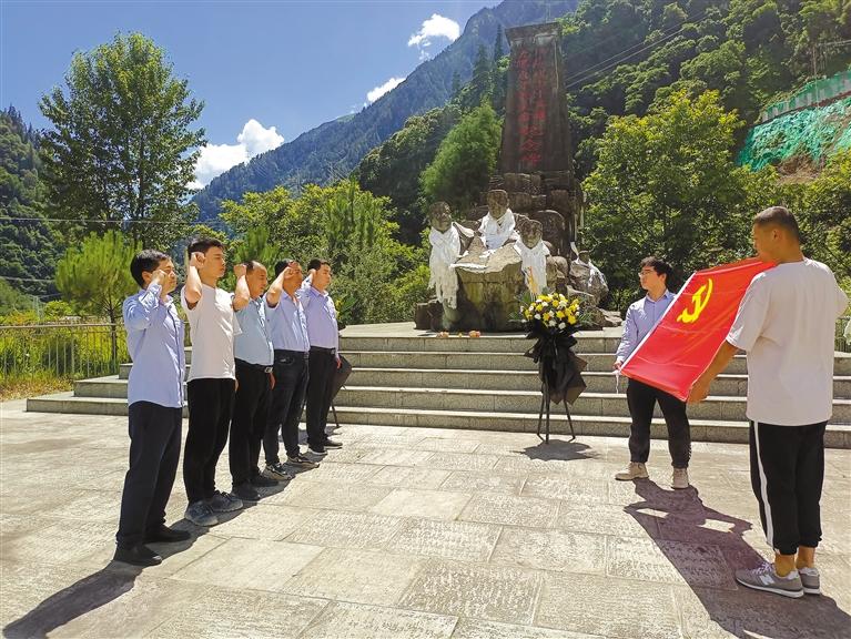 7月1日,中交二公局西藏項目黨支部組織黨員、預備黨員、入黨積極分子,前往波密紅樓、“川藏線上十英雄”紀念碑等地開展慶祝建黨101周年主題黨日活動,引導黨員干部自覺錘煉黨性,增強服務意識、感悟初心、傳承使命。 圖為該支部黨員在“川藏線上十英雄”紀念碑前重溫入黨誓詞。林芝采訪組 攝