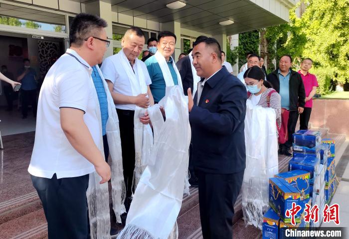 圖為日土縣縣長(zhǎng)達(dá)瓦次仁為考察團(tuán)一行獻(xiàn)哈達(dá)。日土縣縣委供圖