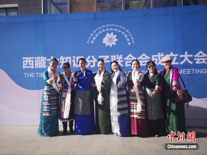 2019年,邊巴拉姆(左三)參與成立西藏自治區(qū)女知識分子聯(lián)合會,并擔任首任會長。受訪者供圖