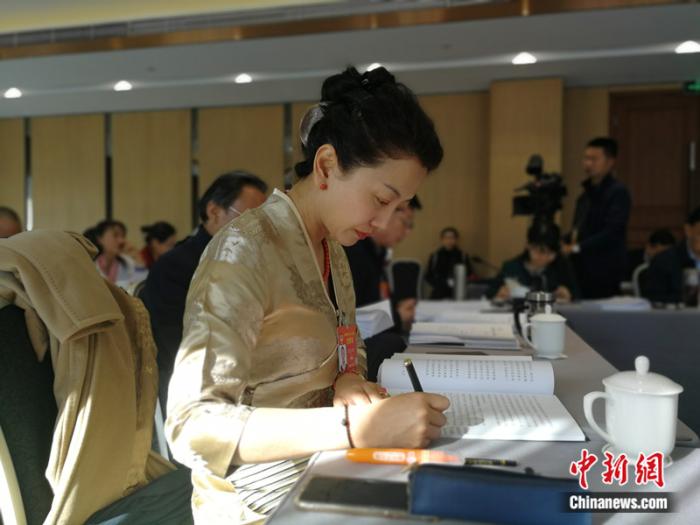 圖為邊巴拉姆在全國兩會上參加政協(xié)小組會。受訪者供圖
