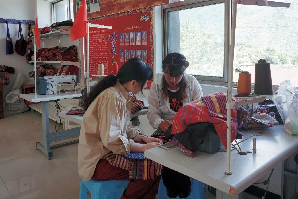 支隊成員向當?shù)厝藢W(xué)習(xí)民族服裝制作工藝