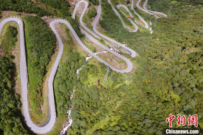 圖為西藏錯(cuò)那縣勒布溝盤山公路與電力設(shè)施。江飛波 攝