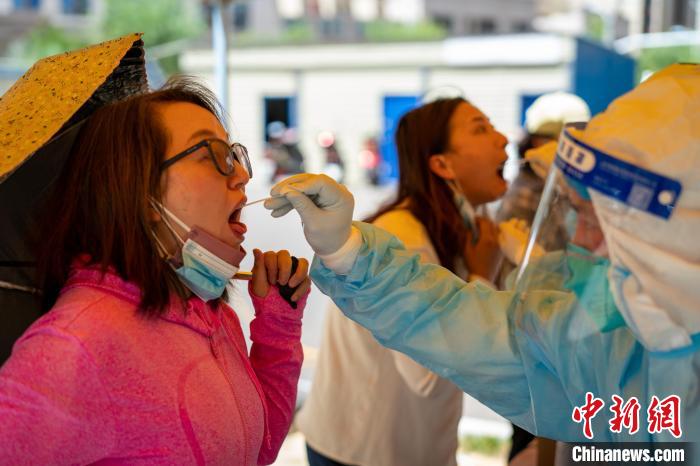 8月12日,拉薩市民有序進(jìn)行核酸檢測(cè)。 江飛波 攝