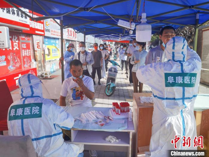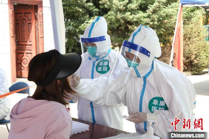 圖為西藏阜康醫(yī)院醫(yī)務(wù)人員在社區(qū)進(jìn)行核酸采樣。阜康醫(yī)院供圖