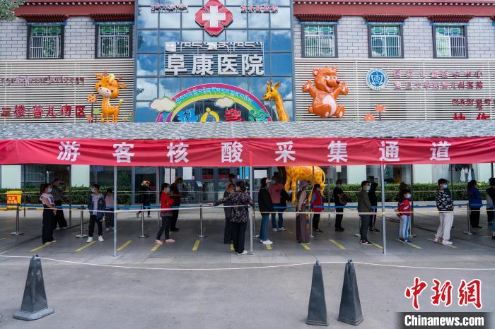圖為西藏阜康醫(yī)院門口開通的游客核酸采樣綠色通道。江飛波 攝