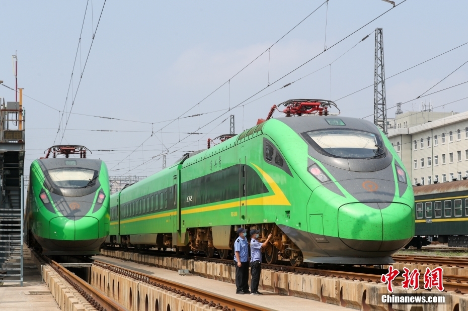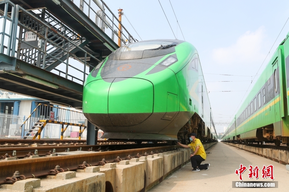 8月17日,北京車輛段西庫檢車間,檢修人員剛剛完成一列時速160公里動力集中型復興號動車組(俗稱“綠巨人”)的檢修工作。這里是京津冀地區(qū)唯一的“綠巨人”檢修維修基地,肩負著18列共計261節(jié)車輛的檢修任務。隨著暑運逐漸迎來返校返程高峰,檢修人員也在加班加點為列車做好體檢工作,確保運行安全。 中新社記者 賈天勇 攝