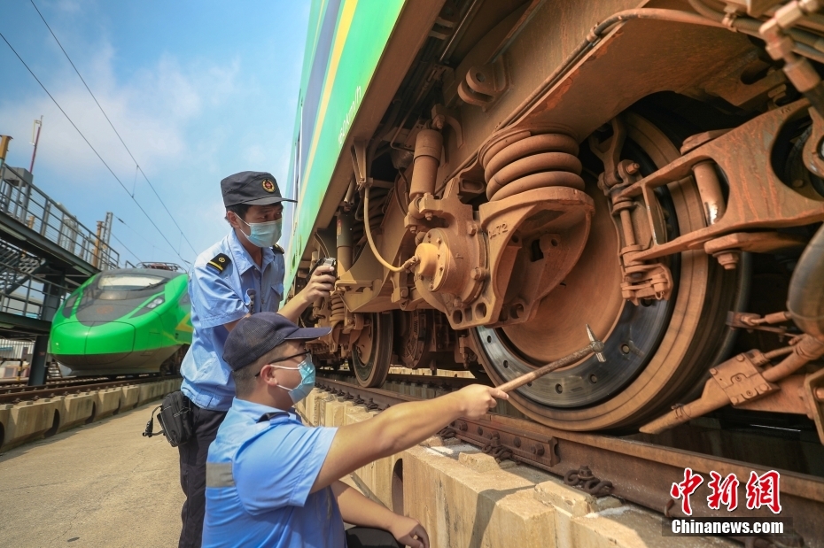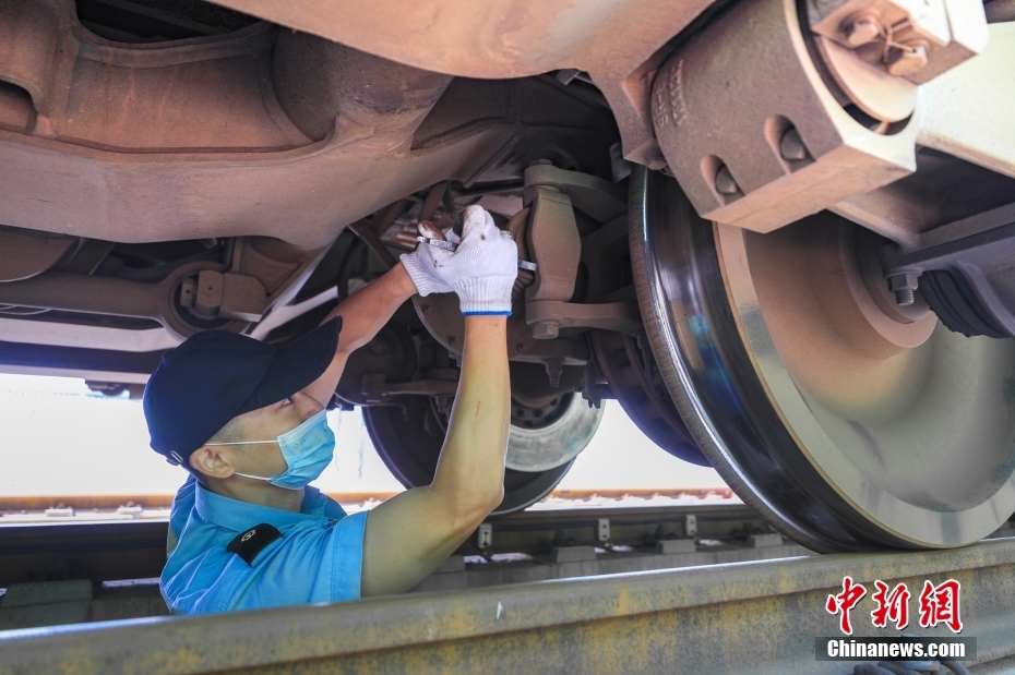 8月17日,北京車輛段北京西庫檢車間內,檢修人員對時速160公里動力集中型復興號動車組(俗稱“綠巨人”)的走行部進行檢修。這里是京津冀地區(qū)唯一的“綠巨人”檢修維修基地,肩負著18列共計261節(jié)車輛的檢修任務。隨著暑運逐漸迎來返校返程高峰,檢修人員也在加班加點為列車做好體檢工作,確保運行安全。 中新社記者 賈天勇 攝