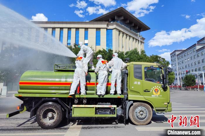 西藏森林消防特勤大隊(duì)利用水罐車對(duì)重要區(qū)域進(jìn)行消殺。西藏森林消防總隊(duì) 供圖